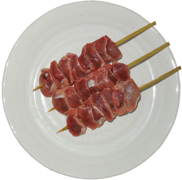鮒忠の国産首砂肝串35g、業務用串物冷凍、解凍後に塩・コショウまたは鮒忠やきとりのタレ(別売り)でうまく焼き上げれば専門店の味が実現出来ます。『自慢の味!人気商品』